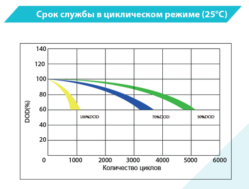 - режим "разряд-заряд" (циклический режим) – 3760 циклов при 70% глубине разряда.