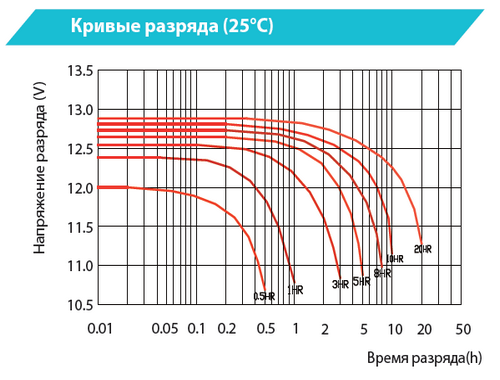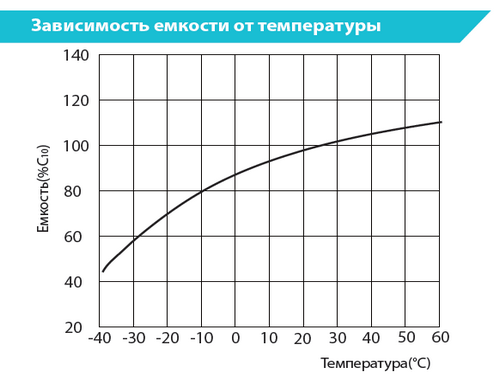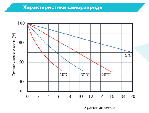 - Саморазряд 2.5% емкости в месяц при 25 °С