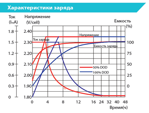 При работе в автономных системах без внешней сети (солнечные батареи, ветряки) срок службы составляет 20%-60% от буферного режима.