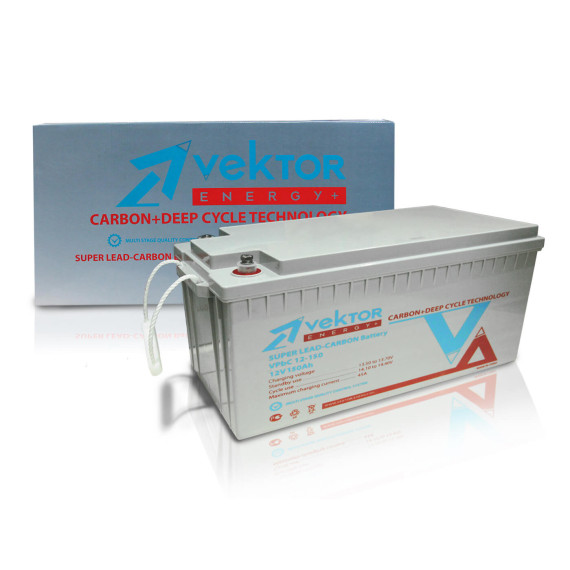 Аккумулятор Vektor Energy VPbC 12-150 - это карбоновая, герметичная аккумуляторная батарея, произведенная по технологии PURE GEL c использованием карбонизированных трубчатых электродов.