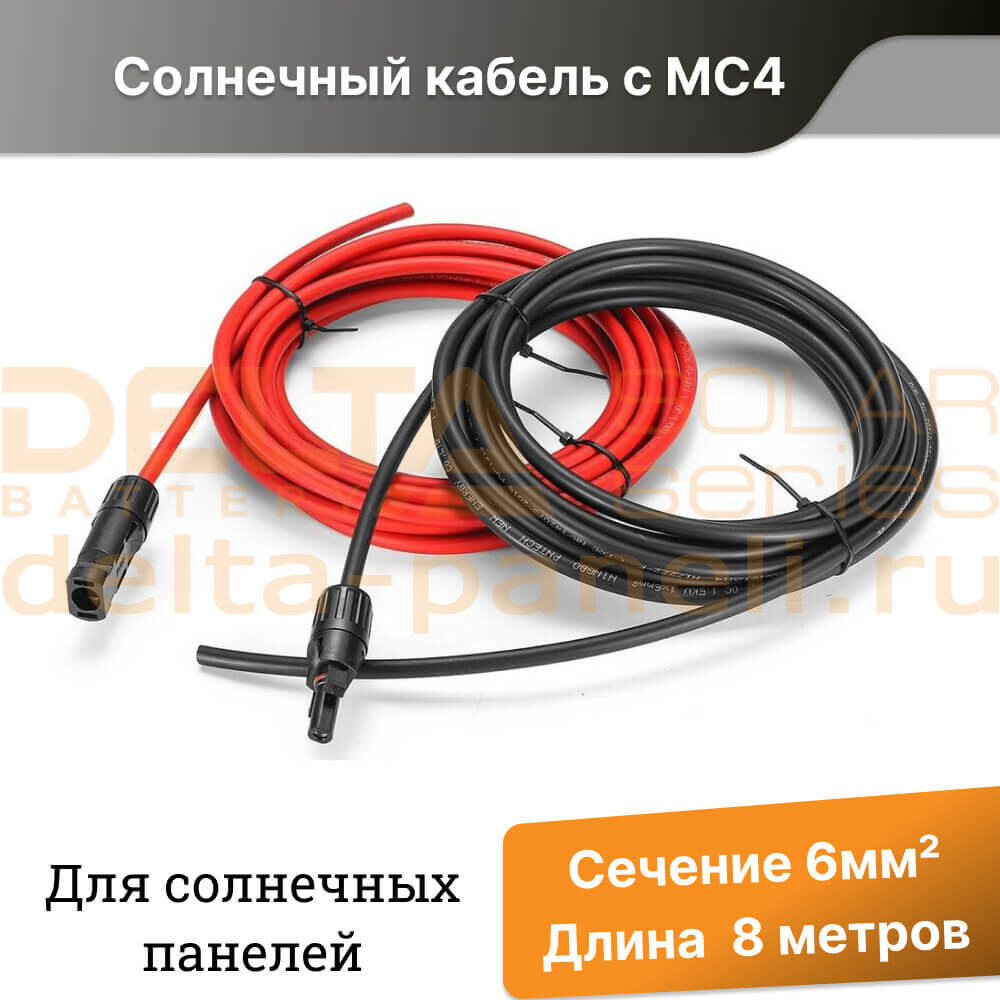 Кабель солнечный 6 мм² ( MC4 - контроллер заряда) длина 8 метров