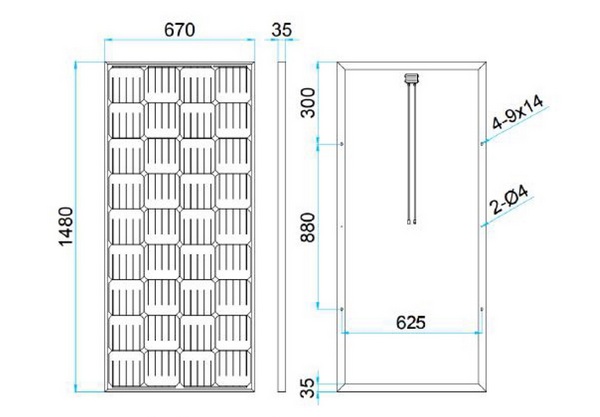 Габаритные размеры солнечной батареи Восток ФСМ 150-12 P