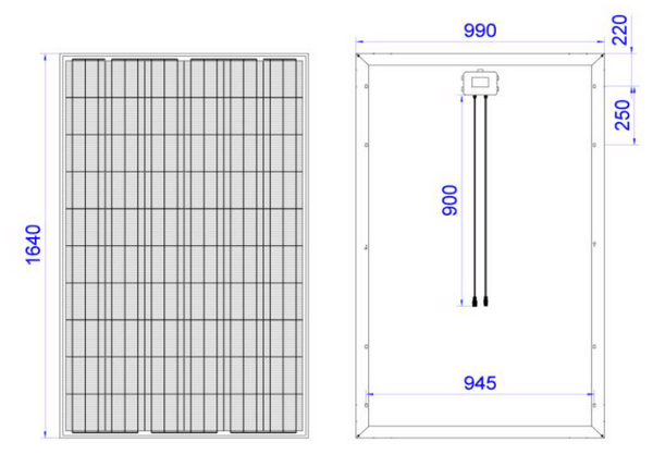 - Размеры модуля1640 х 990 х 35 мм