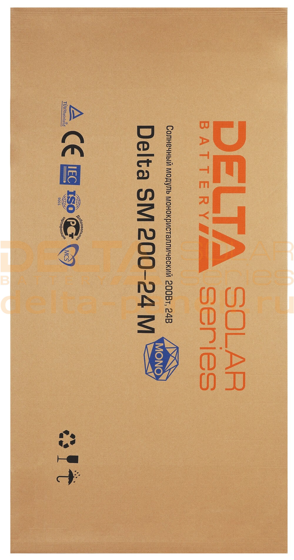 УПАКОВКА И ТРАНСПОРТИРОВКА: Все модули Delta выпускаются в индивидуальной картонной коробке. При транспортировке солнечных батарей в регионы России обязательна дополнительная жесткая упаковка (деревянная обрешетка или паллетный борт). За сохранность груза при отправке модулей без жесткой упаковки поставщик и транспортная компания ответственности не несут.